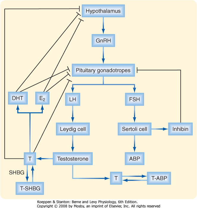 The testis is regulated by an endocrine axis (Fig. 43-10) involving parvicellular hypothalamic gonadotropin-releasing