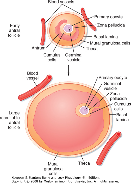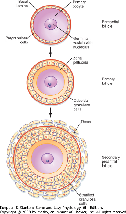 14. Follicles develop from the smallest (primordial) to a large antral follicle over a period of months. The latter part of follicular development requires gonadotropins.