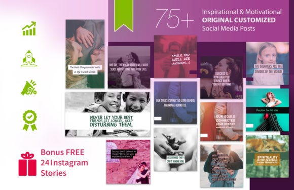 Tired of the same old posts? It’s time to update your feed with **75+ ORIGINAL high resolution social media posts** designed to **increase engagement** and **inspire your audience**!