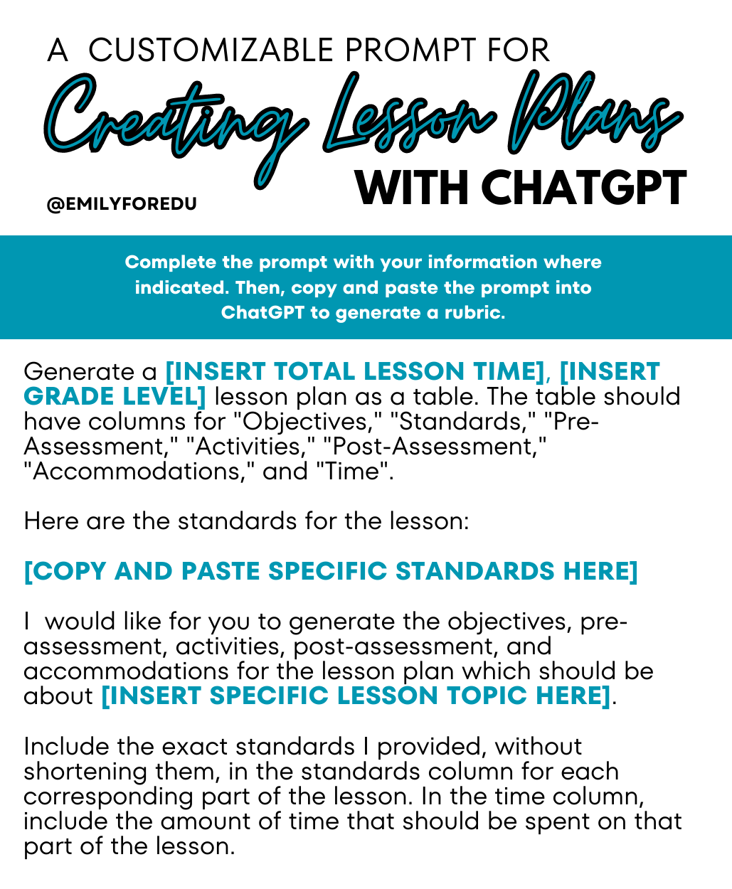 - An editable prompt for generating a basic lesson plan with ChatGPT