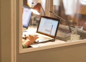 De son côté, l’interprète a besoin d’un environnement de travail calme (sur site, dans un hub ou depuis leur domicile) et d’un appareil de transmission pour interpréter simultanément les interventions. Pour que la RIT fonctionne, il faut donc une installation et un équipement technique en parfait état de marche avec des tests préalables in situ.