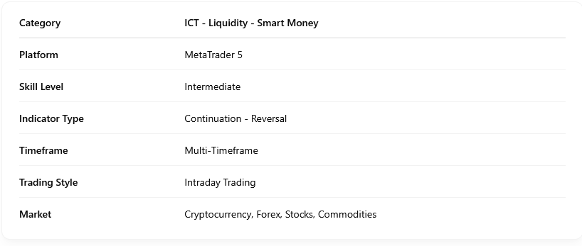 The Rejection Block Indicator is an essential tool for traders aiming to identify key market reversal points. By analyzing candle shadows at price peaks and lows, it automatically delineates rejection block areas on the chart. This feature is particularly beneficial for liquidity-based and ICT-style traders, enhancing their strategic decision-making process.