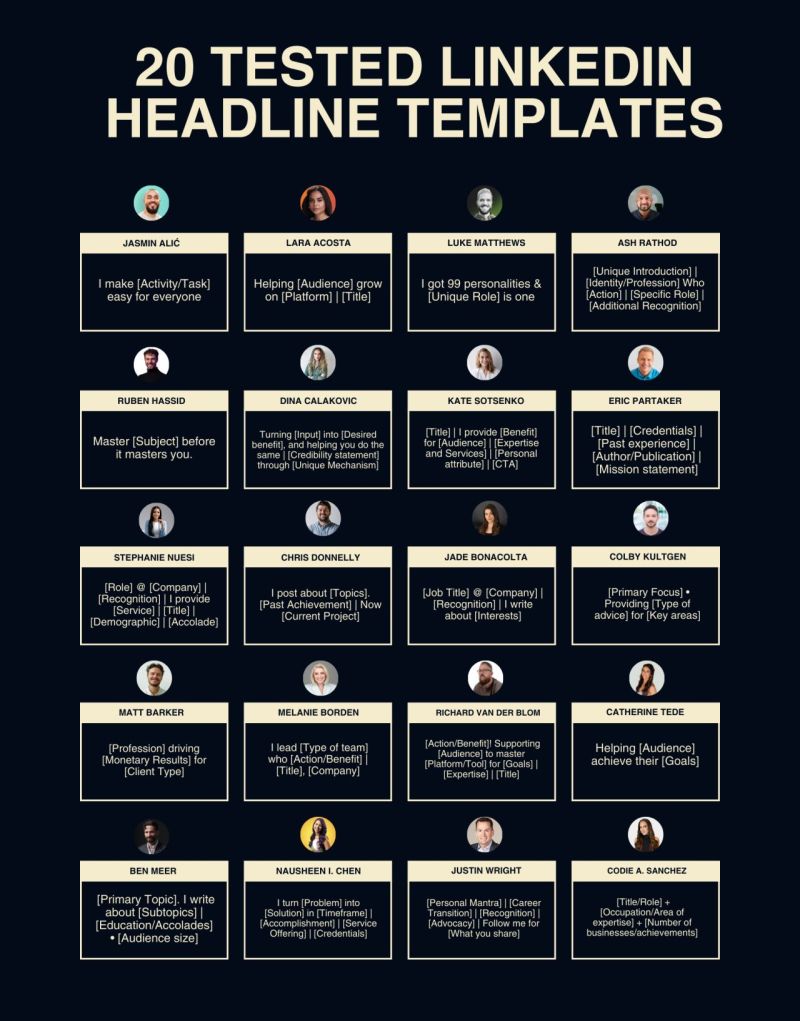 Here are 20 proven templates to do it in 2 mins or less (based on the profiles of the world’s best LinkedIn creators):