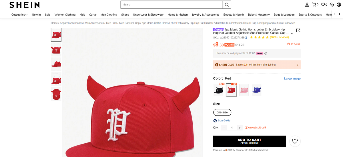 YX Hatlife (the vendor who sells the hats on Shein) sells these hats in multiple colors. These colors include pink, blue, red, and black.