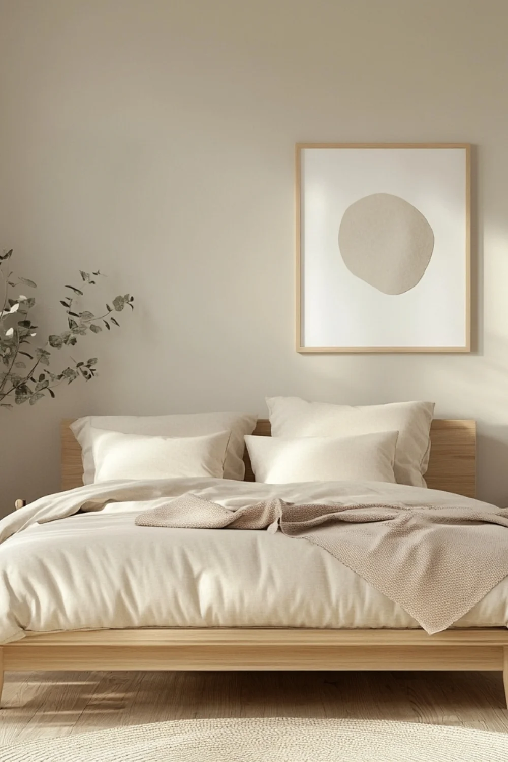 Choose a low-profile wooden bed frame with a minimalist design. Light woods like oak or pine work best for a classic Scandi look.
