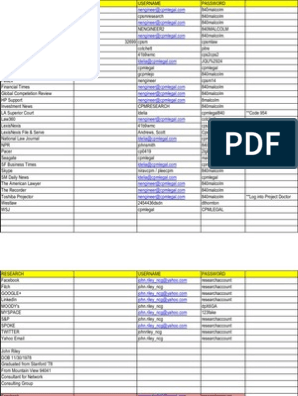 Sensitive Login and Password List | PDF | Business | Computers Like this:Like Loading... Post navigation Systems Support Engineer IT/Windows/Mac/Network