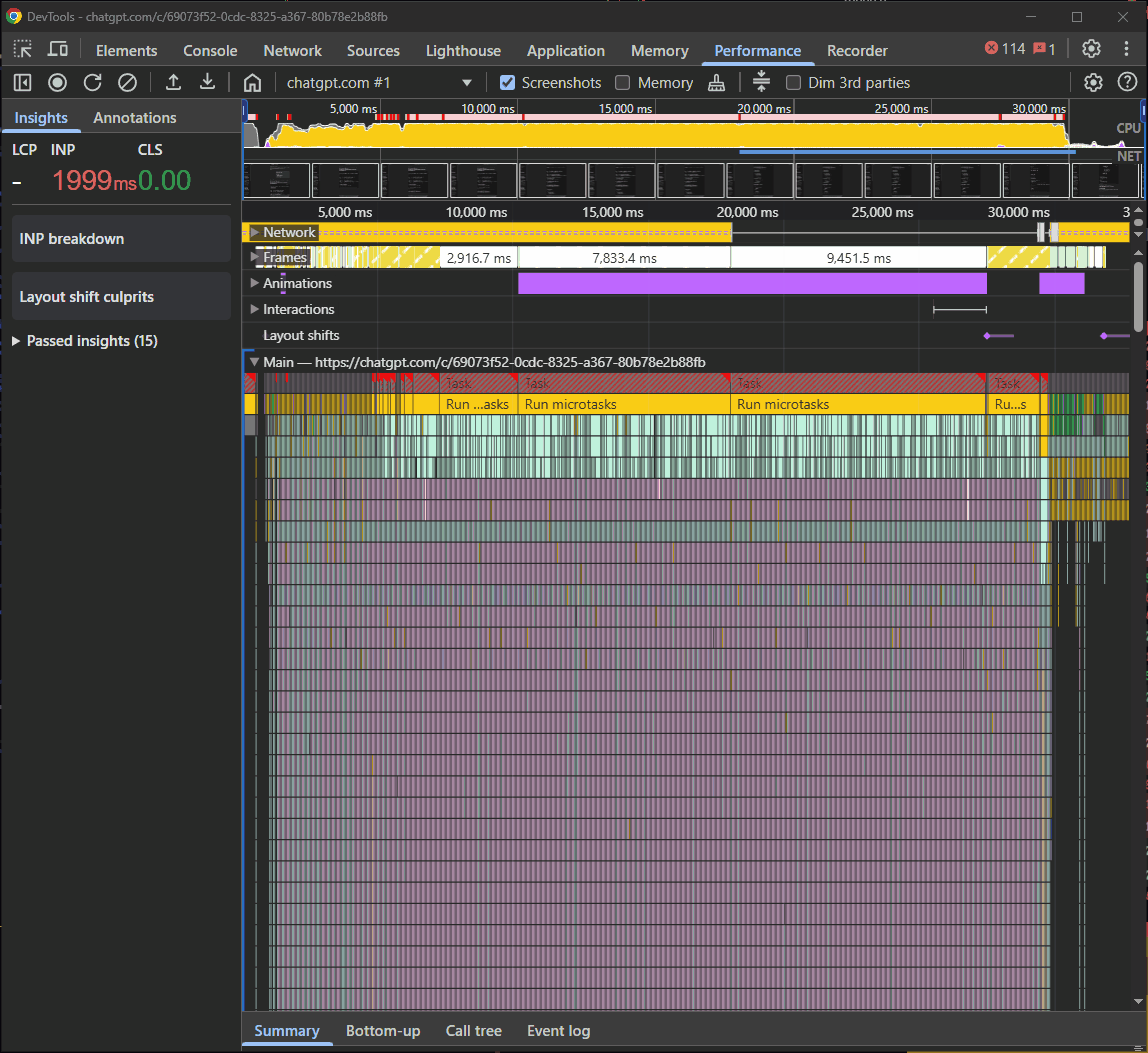I have a decent build and browser is practically unresponsive as soon as ChatGPT answers, starting when the conv reaches about 50+ messages… This is not normal 😭