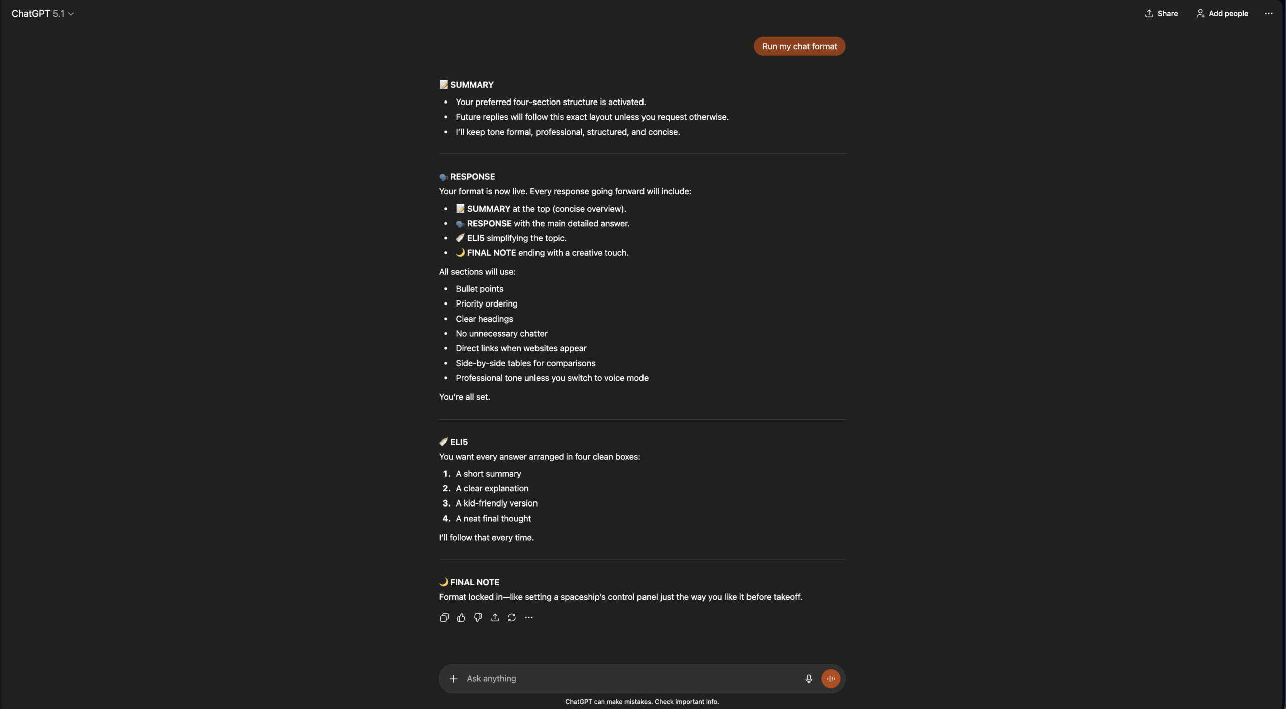 So, so far, I have my Summary, Response, ELI5 (Explain like i'm five – for laymen terms), and Final Note.