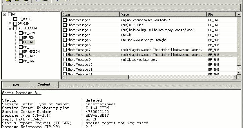 - Contains a “content” view for plain text viewing of data, as well as a hexadecimal view for more specific analysis.