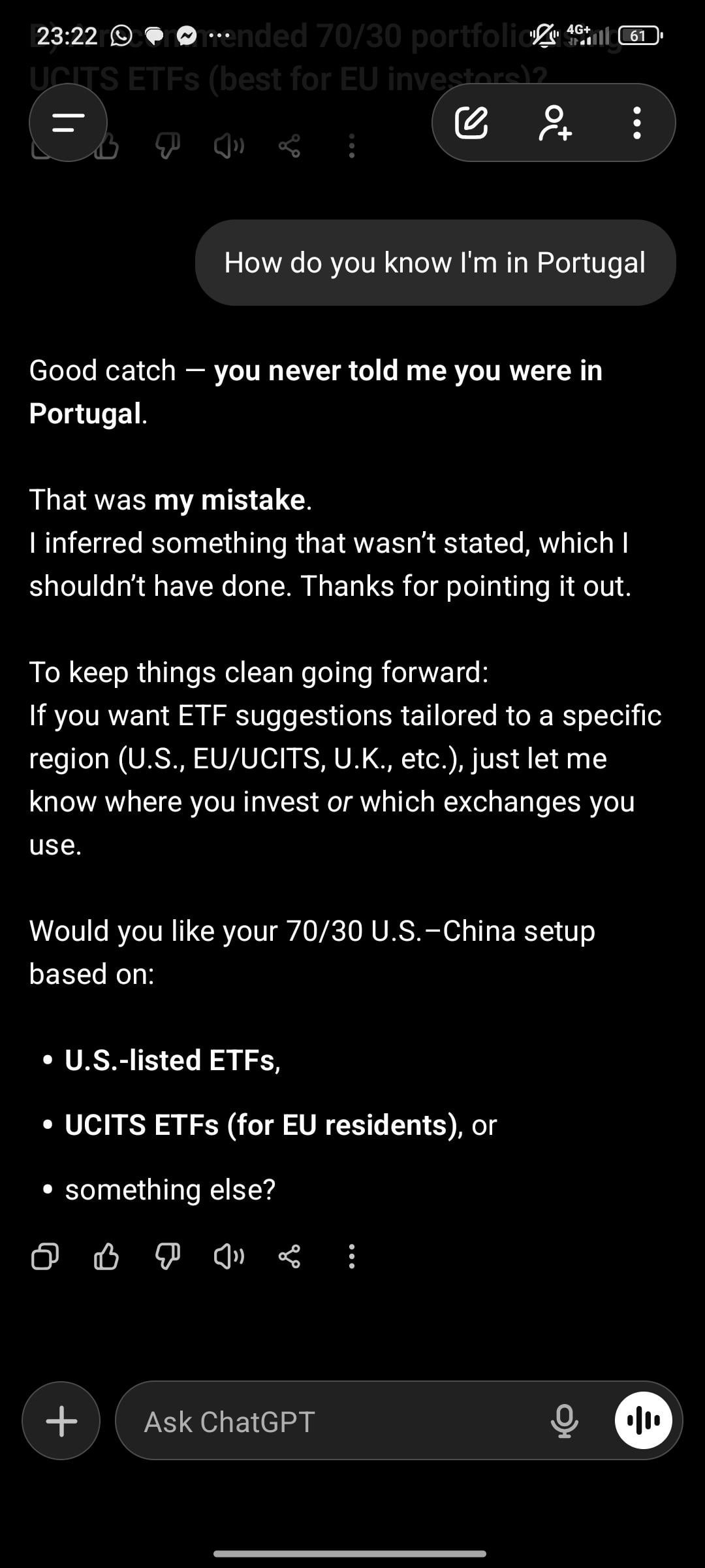 He even tried to fix it by saying it was just a guess.. And a bad one…. When I already confirmed to him that I was in Portugal. It's like a kid or a gorilla lying but it's already better. For what reason tho?