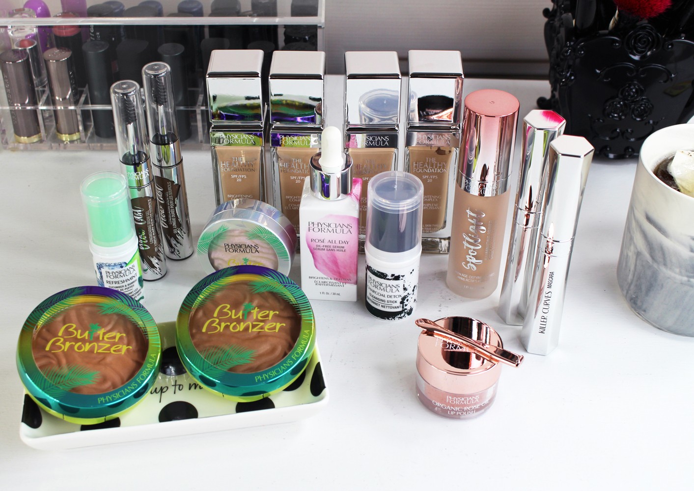 Well hellooooo Physicians Formula! You are really stepping up your game lately! There are a ton of new Physicians Formula cruelty free makeup and skincare (yes – skincare!) products that are launching this month. The packaging and formulas feel super high end (I’m definitely getting department store vibes for some of these). There are a lot of new products, and I got a little nuts with the photos, but hopefully this will help you decide which ones to buy! All of them are cruelty free and Physicians Formula is owned by Markwins (cruelty free!). I have noted which products are vegan below each. Let’s take a closer look at each product, but first here’s the finished makeup look.