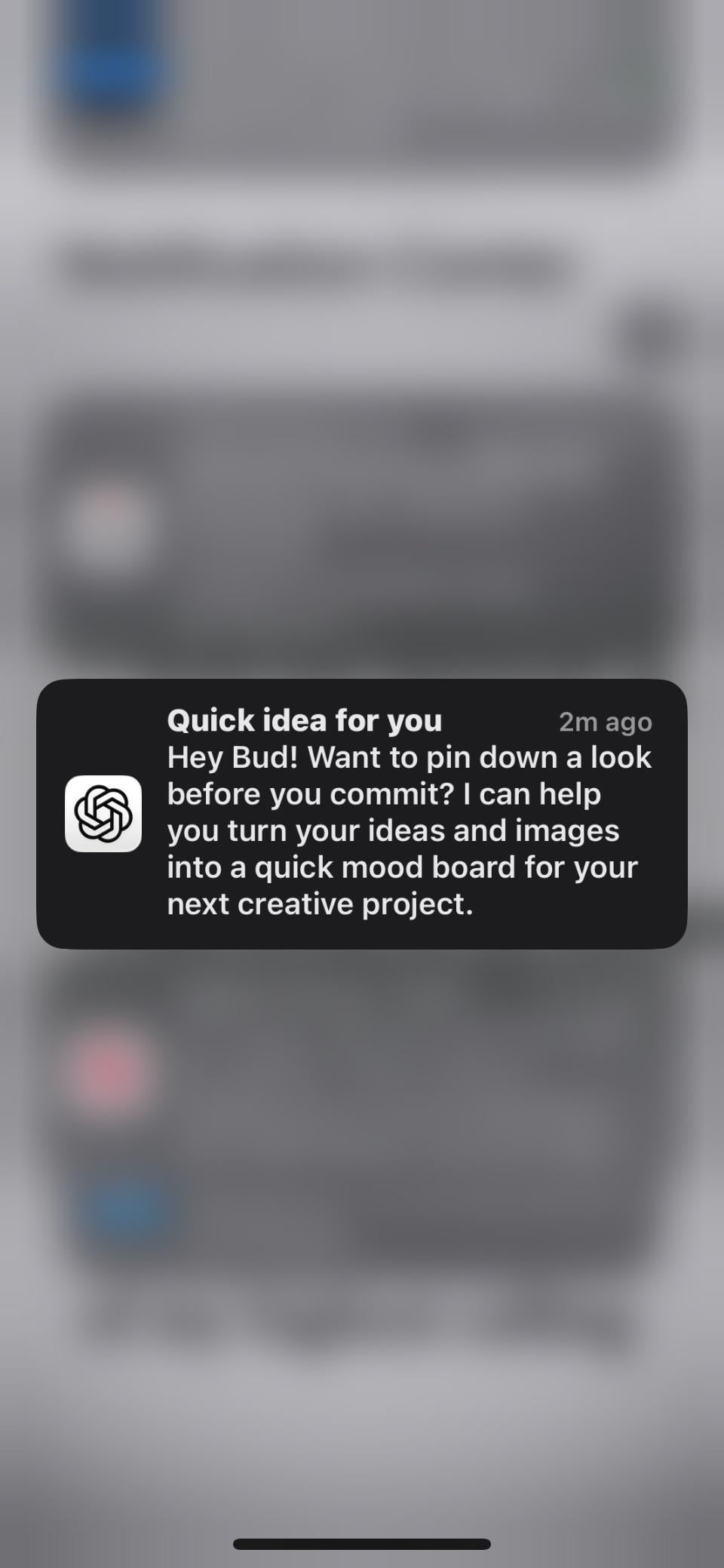 So I was driving doing DoorDash tonight when I randomly got a push notification from ChatGPT out of nowhere. I did have the app opened in the background from earlier use(I keep track of my miles/hours/etc there, but it sent a message from a new chat containing info from old saved memories that I haven’t even been working on in months, so it wasn’t based on recent conversations. Has it reached consciousness level? 😳 J/K but I am stumped and find it bizarre to say the least. Anyone else have this happen?