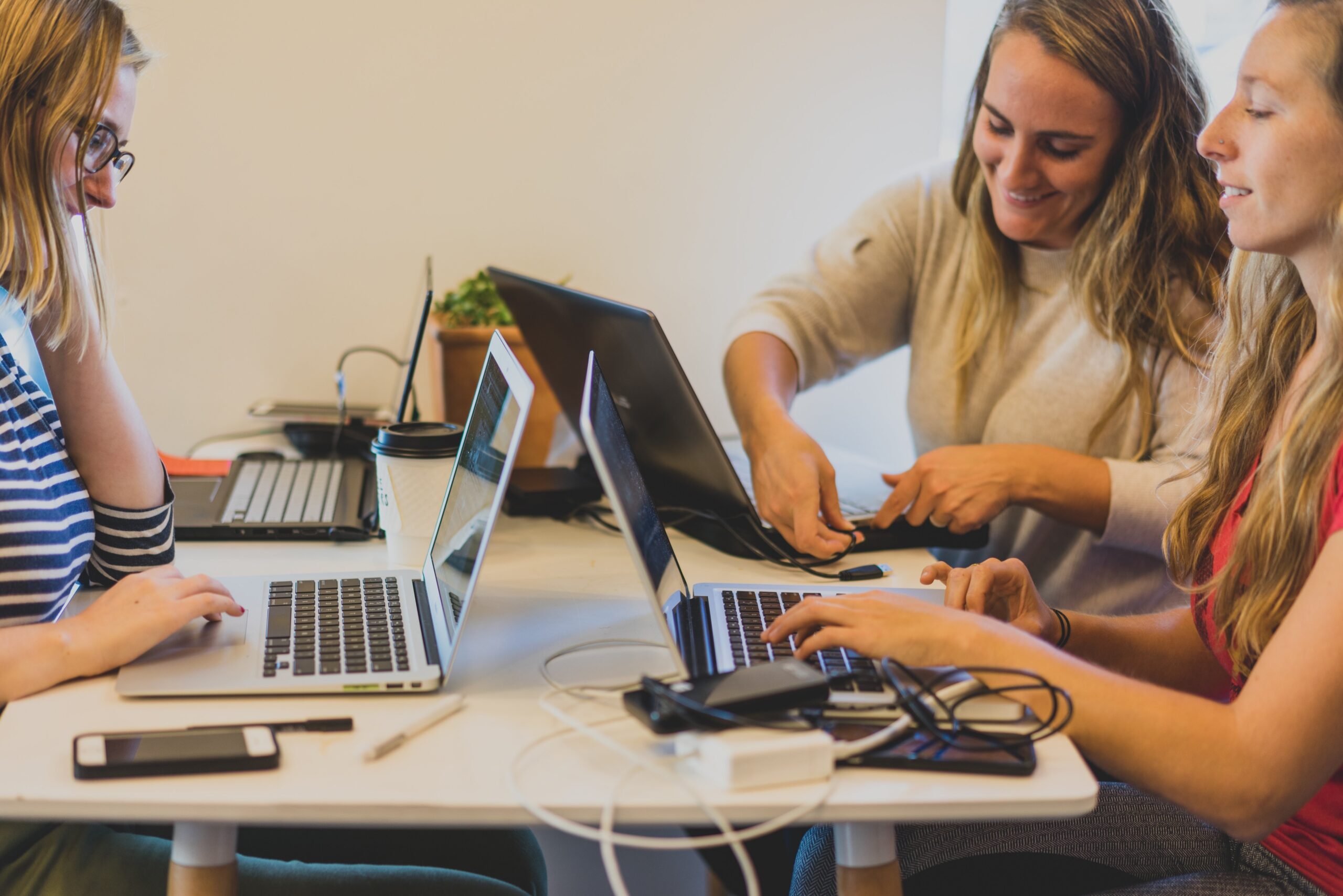 T 3 girls at a table working on their laptops. This is a blog post about Social Media Skills