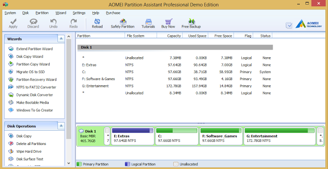 1. Download AOMEI Partition Assistant Professional and install PAssist_ProDemo.exe, then launch the program.