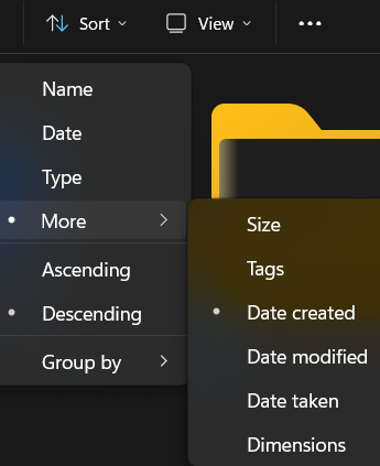 One downside of "Date created", though, is that folders don't show up before files anymore