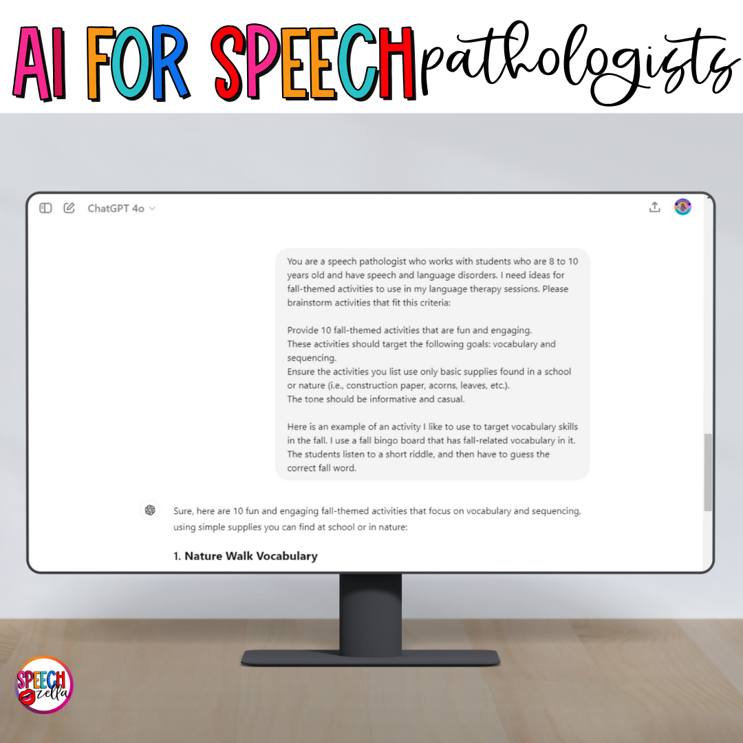 Therefore, SLPs skilled in AI prompt development will see even greater benefits from using generative AI tools. With this knowledge, speech pathologists create prompts tailored to their students’ specific needs.