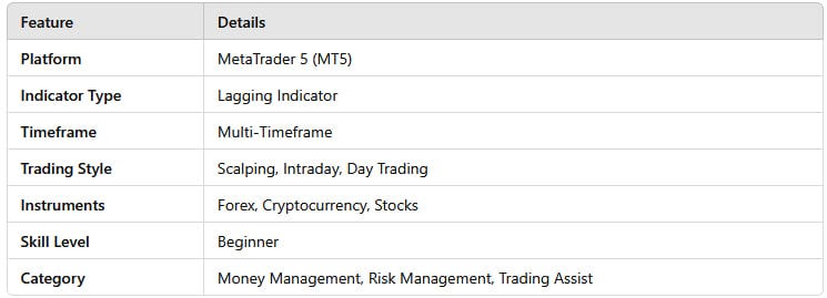 If you are a scalper, spreads above 2–3 pips can significantly affect profitability. The Spread Display Indicator helps you avoid entering trades with excessive transaction costs.