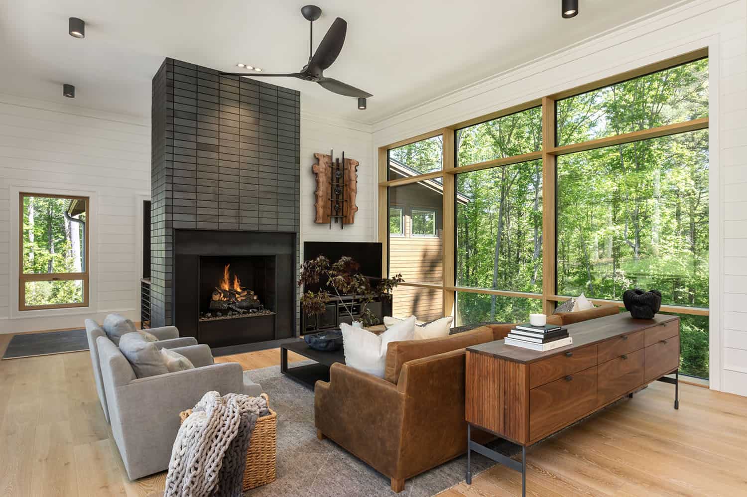 What We Love: This livable modern home in North Carolina is warm enough to relax in, all while enjoying the natural light and views from the expansive glass windows. Stylish details can be found at every turn, making this home perfect for both everyday family living and entertaining. Overall, we are loving how the clean lines of the exterior of the home are continued throughout the interior to create a clean, functional and beautiful home.