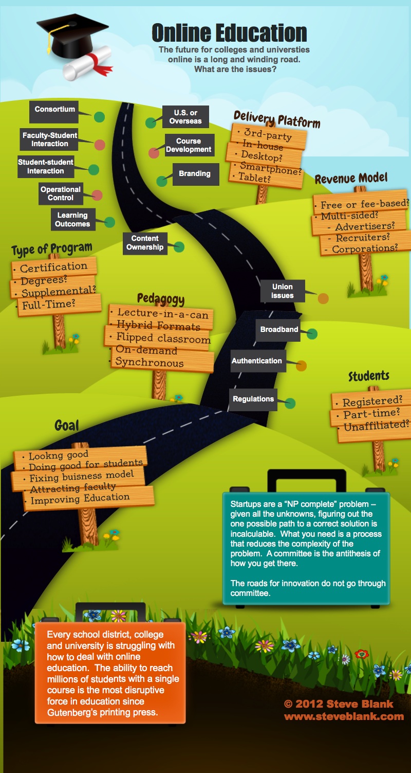 The problem is that the path to implementing online education is not known. In fact, it’s not a solvable problem by committee, regardless of how many smart people in the room. It is a “NP complete” problem – it is so complex that figuring out the one possible path to a correct solution is computationally incalculable. (See the diagram below.)
