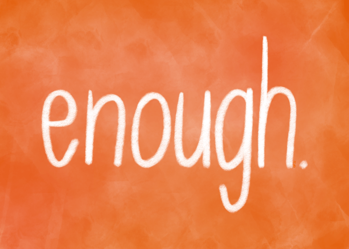 Instagram graphic with pink background. A hand holds a sign that says Enough is Enough