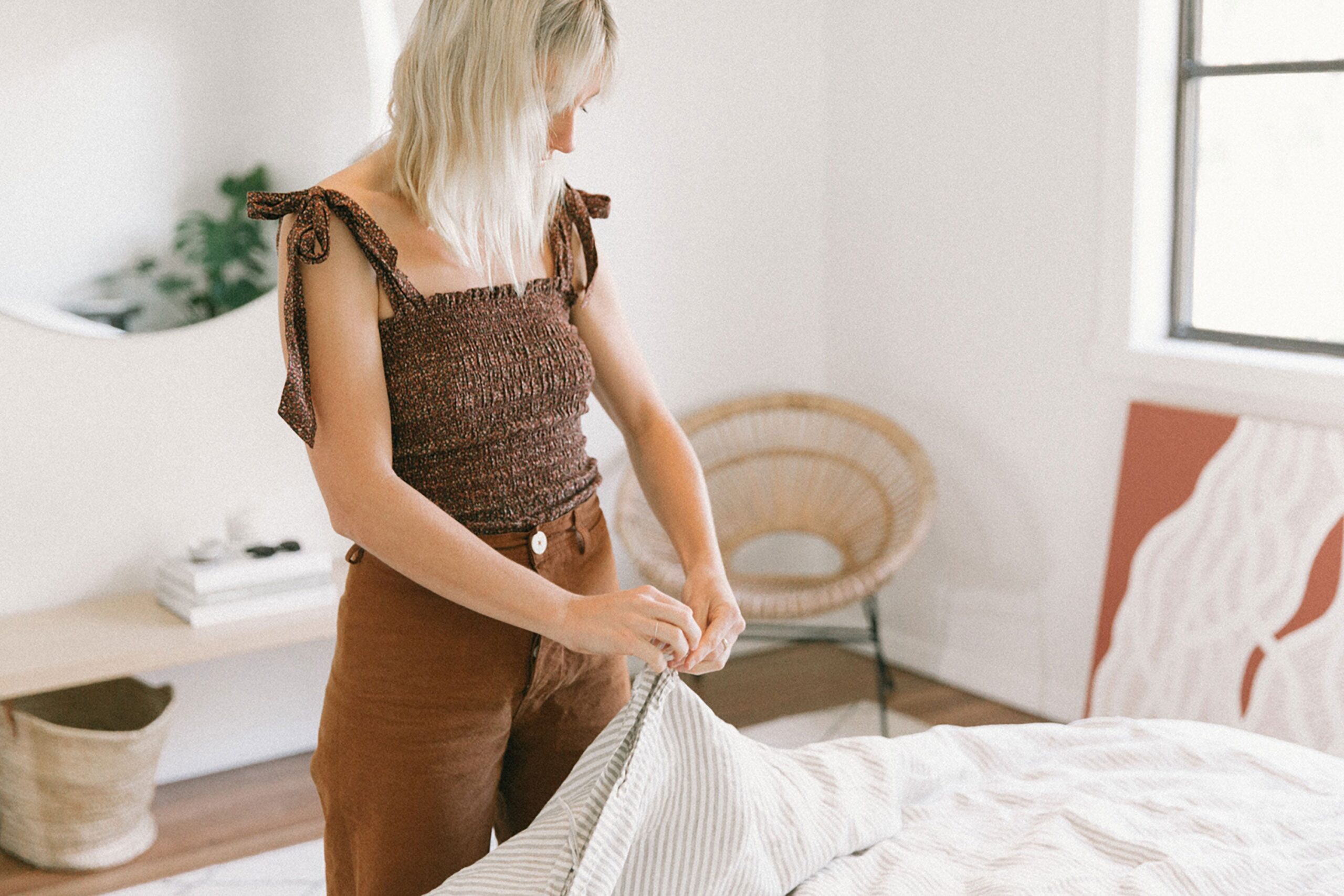 Susie’s freshly made bed, featuring IN BED linen bedding