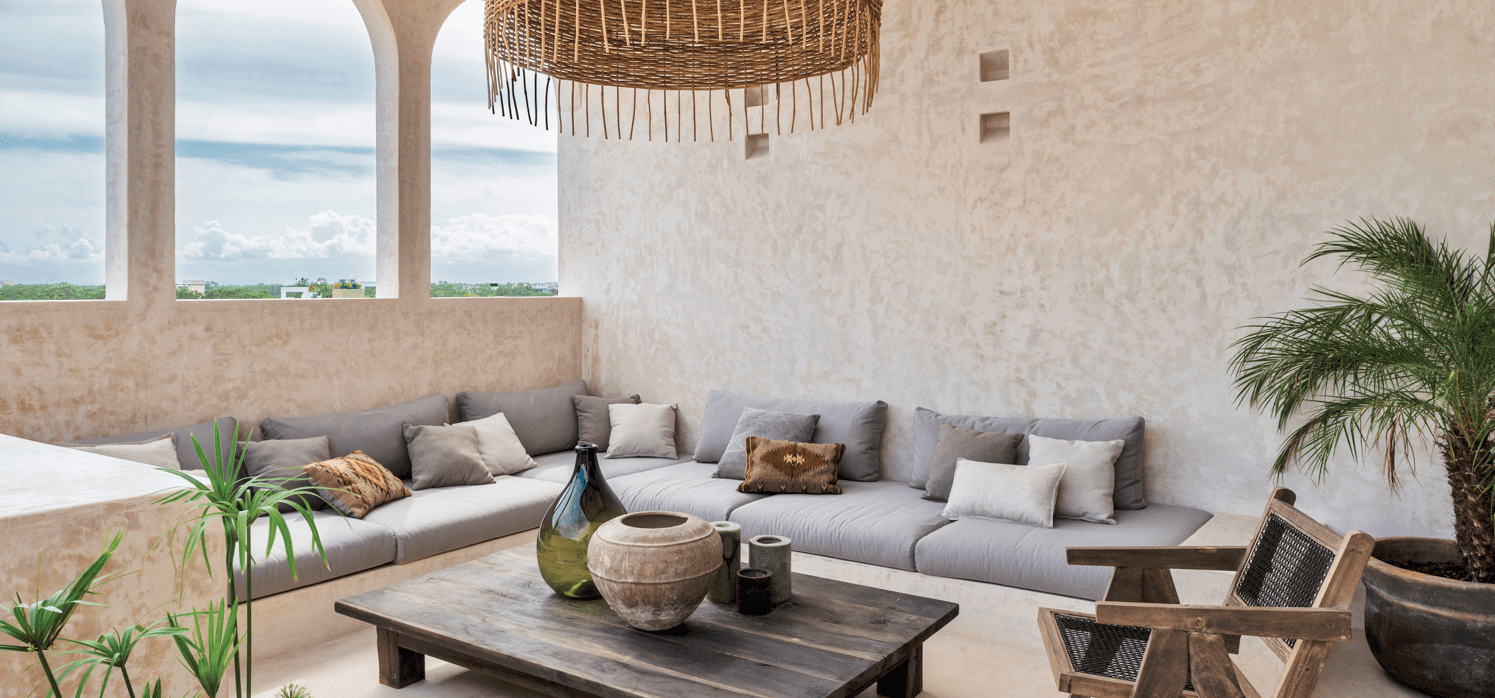As for decor, Terreo Studio was hired by many of the homeowners, including the L.A.-based musician who bought the penthouse, to oversee furnishings. Almost every element was custom designed and produced by the partners via the interiors store they now run parallel to the studio, and for which they collaborate with artisans across the country and source items during their travels. “Last year we had the opportunity to take over a furniture store and integrate it into the practice,” Valdes explains. “Our vision for the store is in motion; we are constantly changing collections.” (Although antique Yucatecan pottery is a staple.) The pair’s philosophy for interior design mirrors their architectural ad-libbing. “We don’t have a fully complete design concept ready when we start decorating; we try to integrate the right proportions of objects and furniture into the architecture as we go along,” Valdes notes. Such a panoptic approach and attention to detail is unusual for the Tulum market—as is the fact that Terreo Studio offers a service to help homeowners AirBnB their units when not in residence. Care to come and stay awhile?