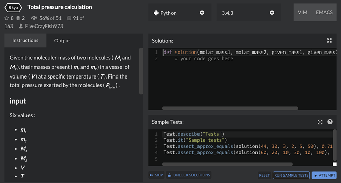 CodeWars isn’t so much a tutorial as it is a gamified way to test your programming knowledge. It consists of hundreds of different coding puzzles (called “katas”), which force you to take what you’ve learned from the aforementioned Python websites and apply them to real-life problems.