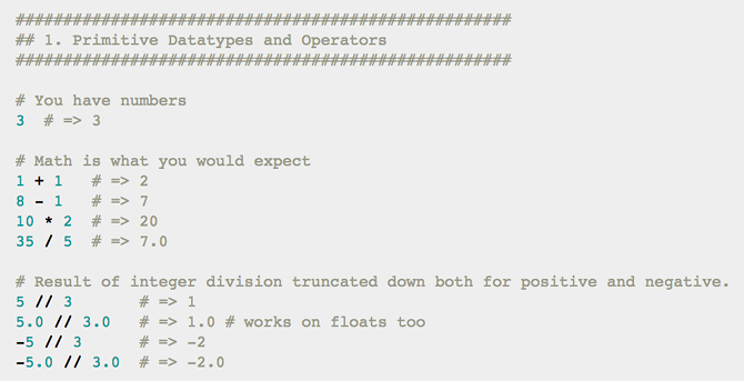 Let’s say you have plenty of programming experience and you already know how to think like a programmer, but Python is new to you and you just want to get to grips with the actual syntax of the language. In that case, Learn X in Y Minutes is the best website for you.