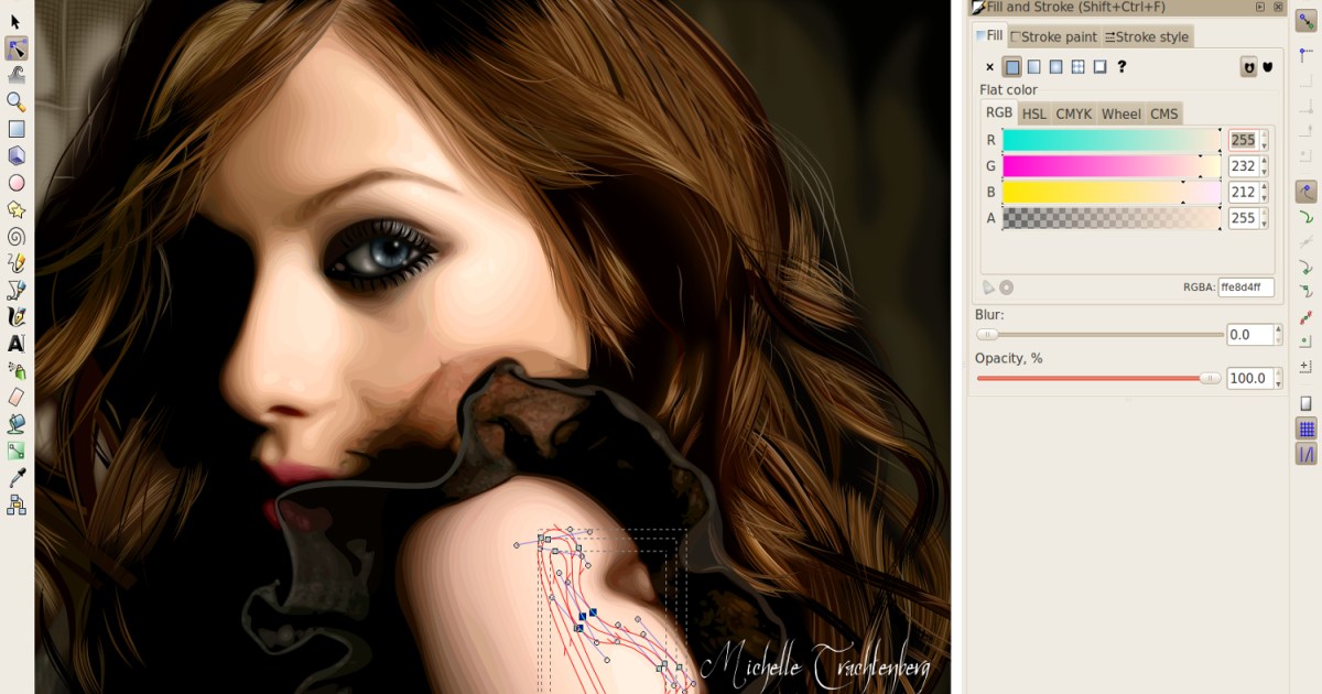 Just like Illustrator, Inkscape has everything a digital artist needs to create near-photo quality illustrations. Your basic toolset includes creating straight lines, freehand lines, shapes, 3D boxes, Bezier curves, spirals, and so much more. You can add layers, color fills, and even effects to your drawing such as blurs, bevels, shadows, textures, glows, and so on.