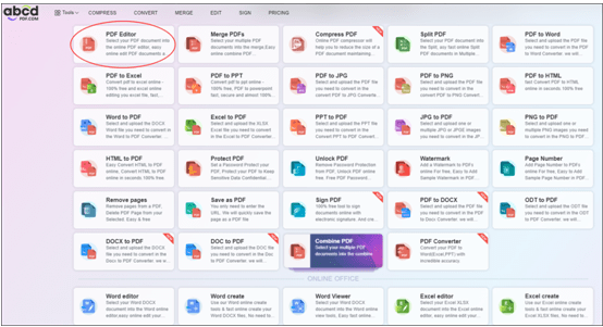 Abcd Online pdf editor is a completely free online PDF processing tool. The one-stop download-free convenience and comprehensive functions make it stand out from many PDF editing tools.