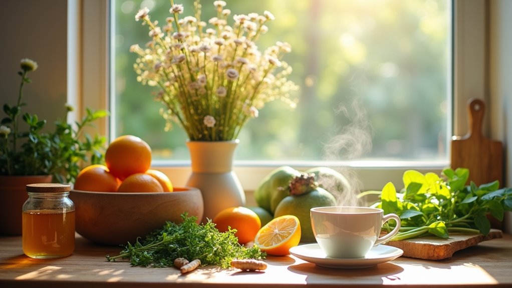 Natural supplements like vitamin C, zinc, and elderberry can strengthen your defenses and help you feel more resilient. Natural remedies like these activate immune responses, creating a protective shield against viruses. Probiotics also support gut health, which is closely linked to immunity, and apple cider vinegar has been shown to enhance digestive health, benefiting overall immunity. Additionally, incorporating local honey into your daily routine may provide a natural way to build tolerance to seasonal allergens.