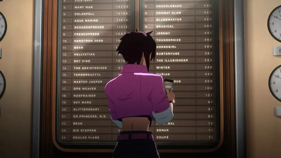 1. Visi and the leaderboard. I really wasn't sold on Visi yet, especially after the strong impression Blazer left on me in Episode 1, but this moment of vulnerability hit me. Yes, Courtney. You DID make a difference. You should be proud. It's all carried by Laura Bailey's amazing performance too, she conveys Visi's emotions with that simple "Thanks" very well.