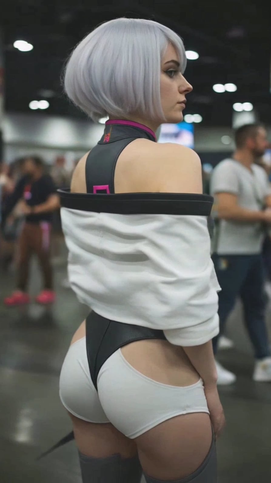 Transform this anime character into a real person. Generate a hyperrealistic amateur photo, shot on an Android phone in low light or natural lighting. Keep the hairstyle, clothing, and facial expression exactly the same, but with realistic skin texture, imperfections, and natural fabric textures. It should look like a leaked photo from a cosplay convention or a casual selfie. Realistic darkness, dim ambient light, no studio gloss