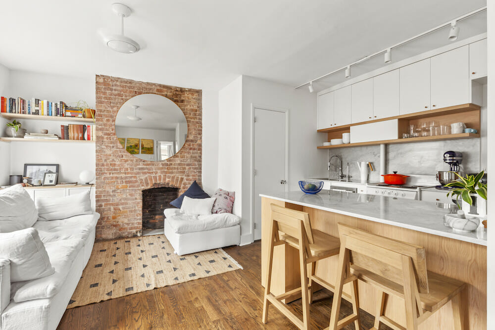Ali and Mark’s new 560-square-foot home in a 1910 building featured all of the charms one would expect to find in a West Village neighborhood. Despite this, a few characteristics would need to be attended to, including odd-angled walls and a windowless bathroom. The couple posted their West Village renovation project and found a Sweeten architect and a Sweeten general contractor to bring order to their walls, build a European-style wet room, and combine a simple contrast of materials. Read on to see how they achieved design and function in all of the right places.