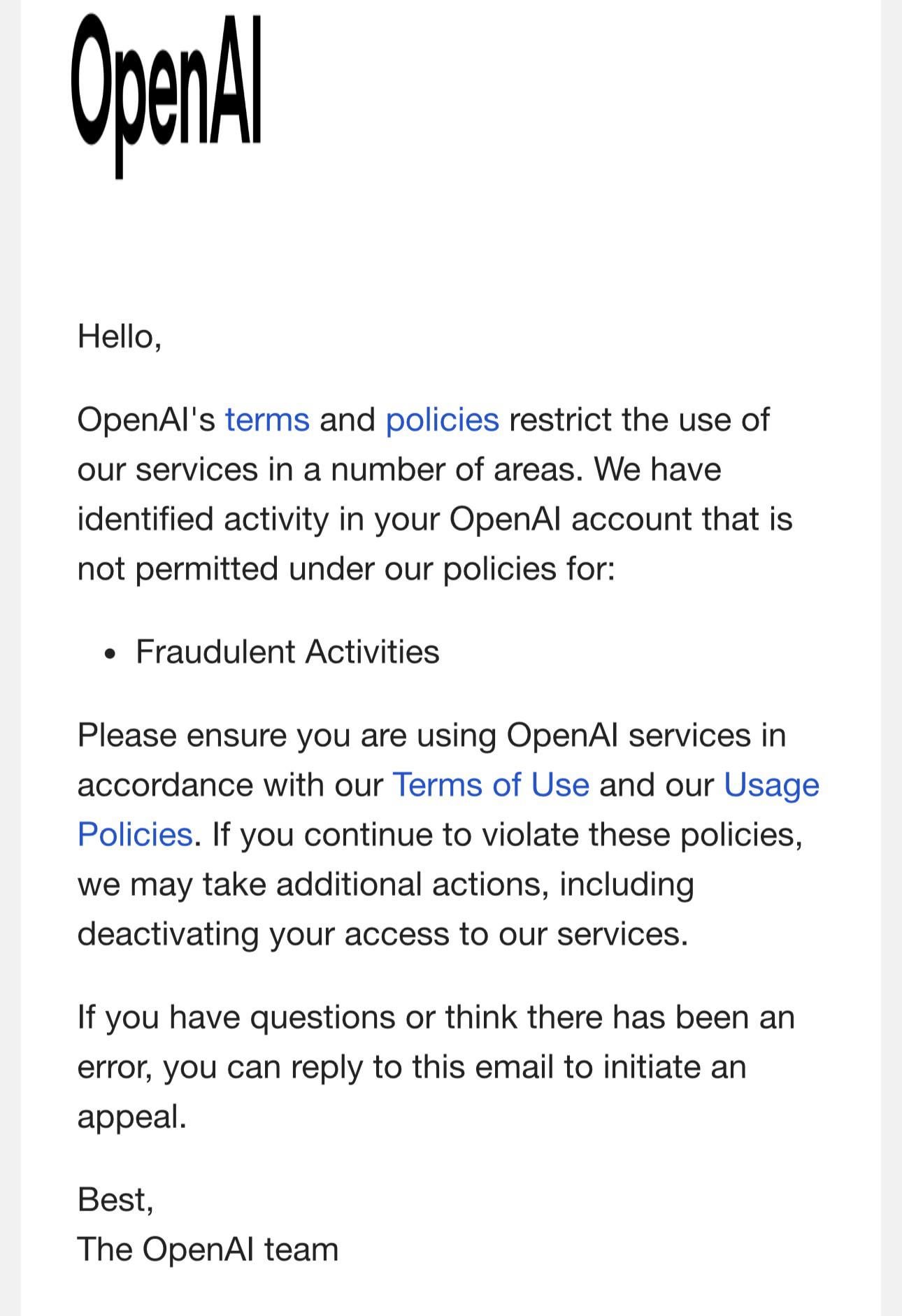 I don’t share my account, I don’t do anything actually against the policy.