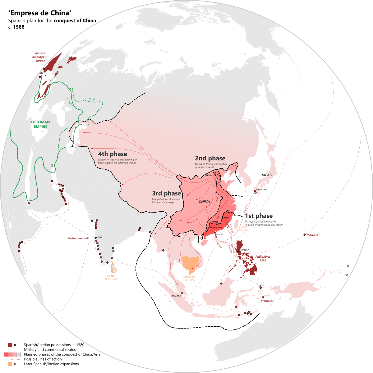 TIL of the Empresa de China, a plan by 16th century Spain to conquer Ming China (with as little as 4000 men or with help from Japanese and Filipino allies) and eventually attack the Ottoman Empire from the east.