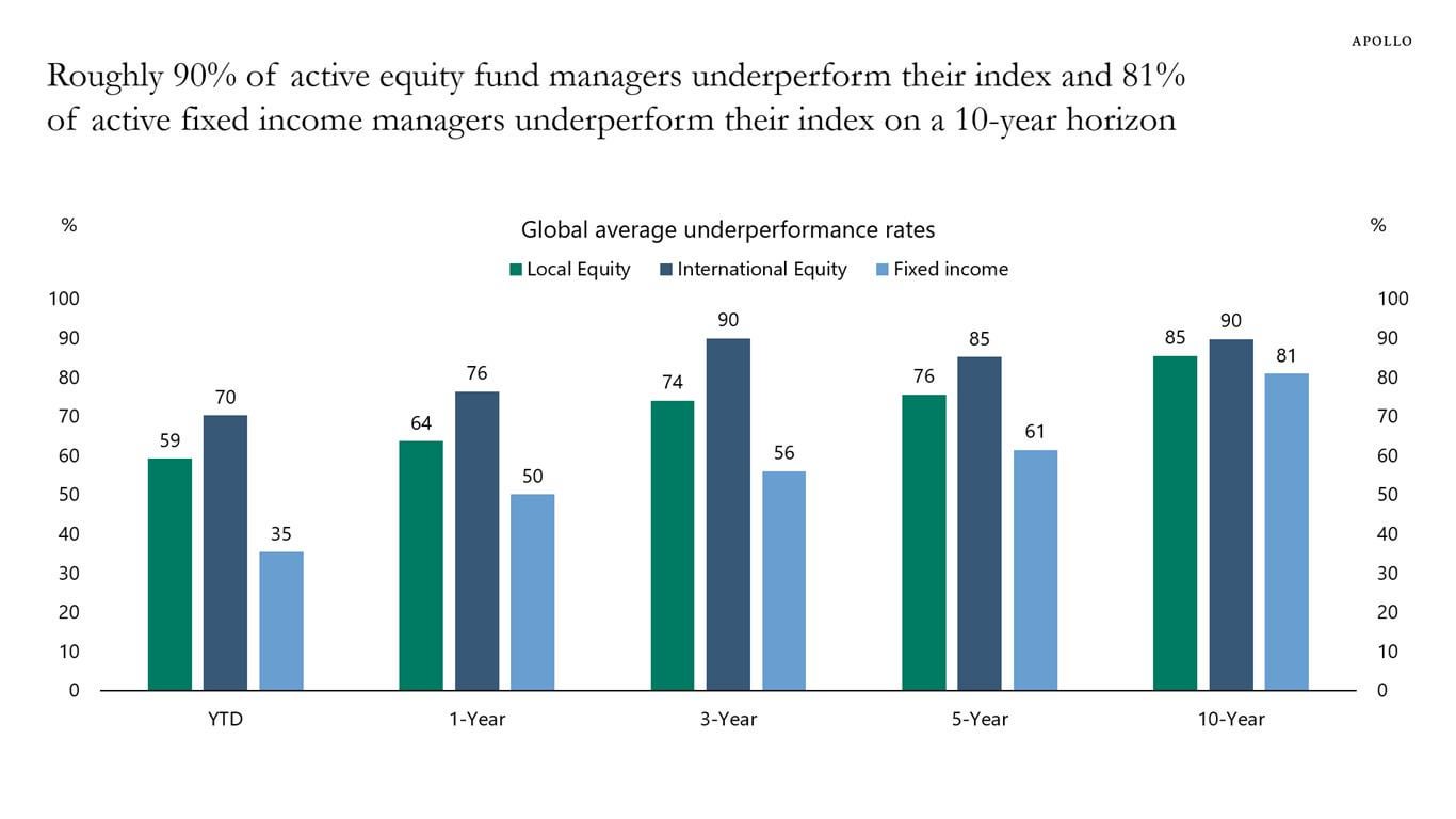 TIL only about 10% of actively managed large cap funds have beaten the S&P 500 over the past decade, meaning 90% of people who paid wealth managers would have been better off just throwing everything into the most popular index there is