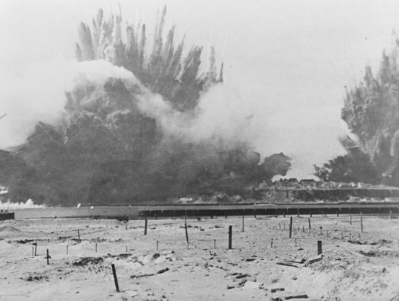 TIL that the British created the largest non-nuclear explosion at the time in 1947. They stuffed a German bunker with 4,000 torpedo heads, 9,000 depth charges and 91,000 artillery shells; the explosion, equivalent to 3200 tons of TNT, was felt 70 km away and generated a 1+ km tall mushroom cloud.