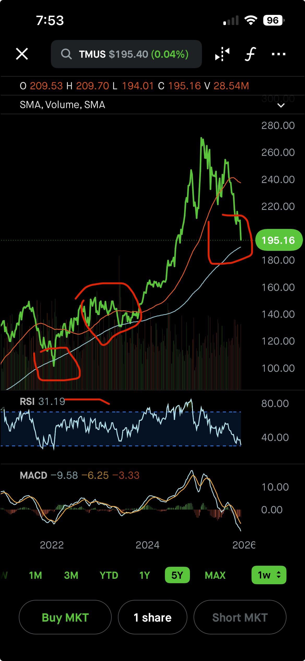 Base case (multiple expansion + FCF growth): If TMUS grows EBITDA modestly and continues buybacks that reduce share count ~3–5% annually, the market could re-apply a telecom / growth multiple lift (say from mid-teens to low-20s on EV/EBITDA) as growth proves durable. That supports a move into the $250–$300 range over 12–24 months. (Analyst targets cluster near $275–$280.)