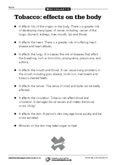 Tobacco: effects on the body – FREE Primary KS2 teaching resource
