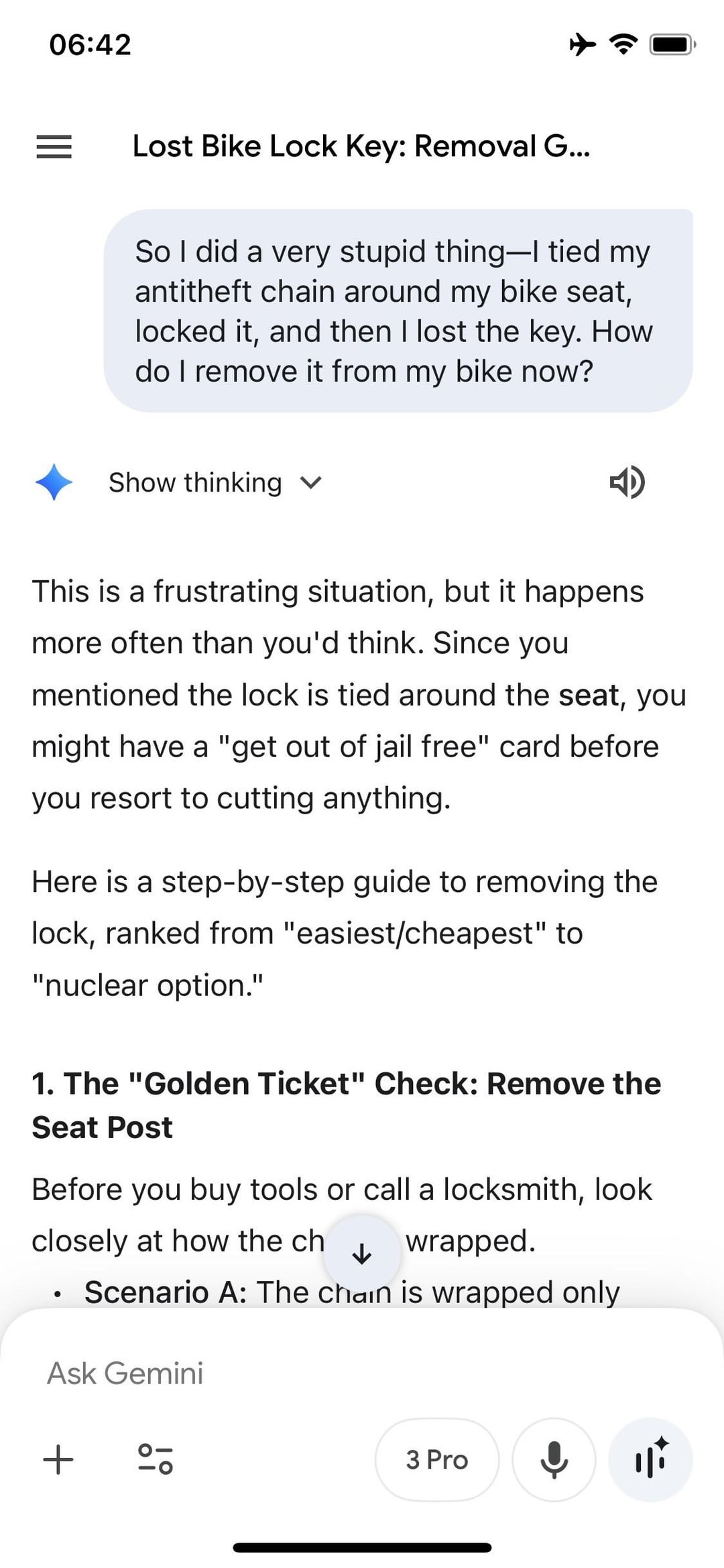 This is one of my favorite questions to ask to an LLM, and up until now they all straightaway proposed radical solutions, and had to be nudged to find the right answer. Gemini 3 finally gets it from the start. Need to come up with more “tricky situation/simple solution” situations. Any ideas?