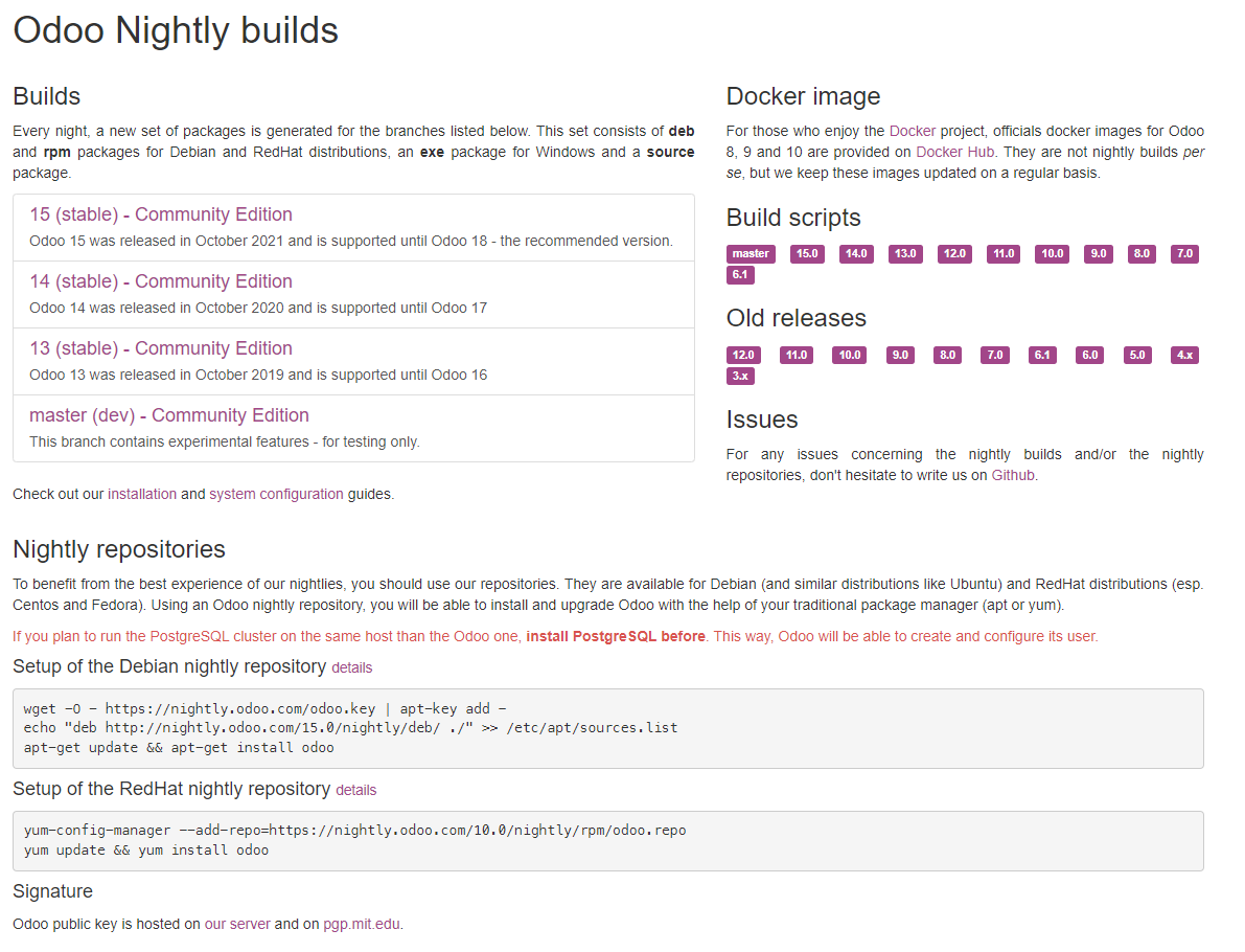 - Buka link https://nightly.odoo.com/ untuk tempat download Odoo dan pilih versi yang 14 (stable)-Community Edition