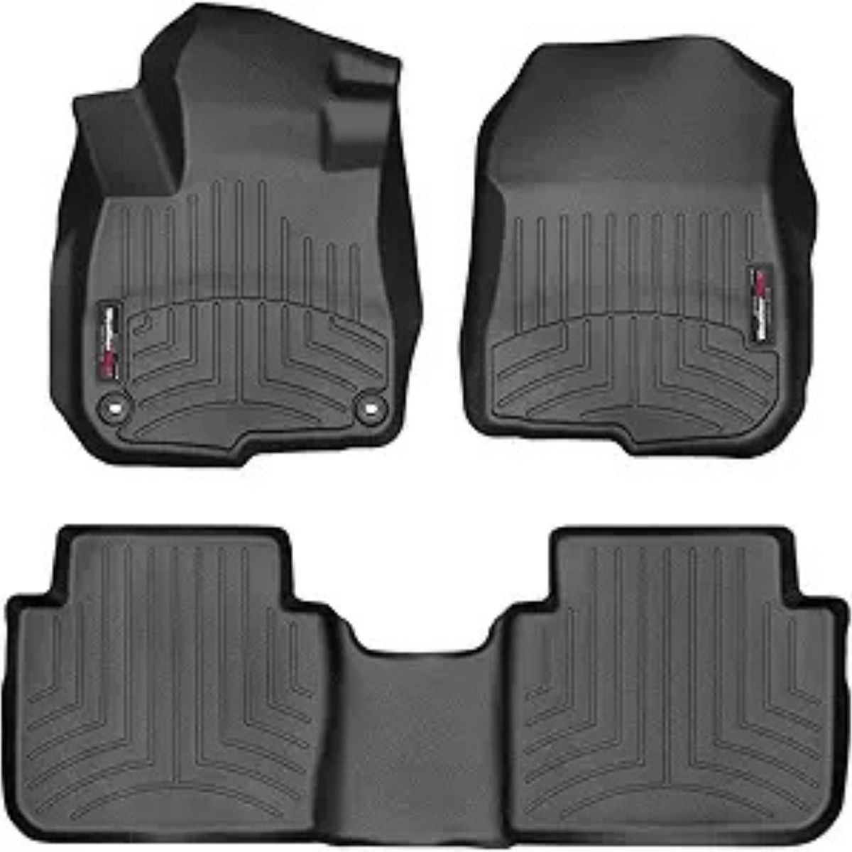 WeatherTech FloorLiner set shown in black, highlighting the contoured design and deep channels engineered for maximum interior protection.”