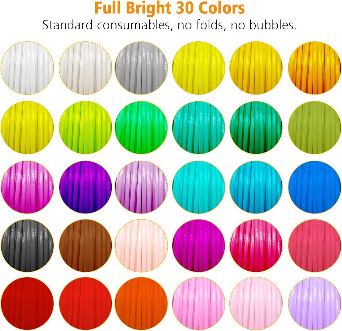 With 30 vibrant colors included in the set, each providing about 16.4 feet of filament, the 3D Pen PLA Filament kit offers a wide spectrum for your projects. This broad range encourages unrestricted creativity, enabling users to blend, layer, and mix colors effortlessly. Whether crafting detailed miniatures or colorful art pieces, the diverse palette caters to nearly every creative vision.