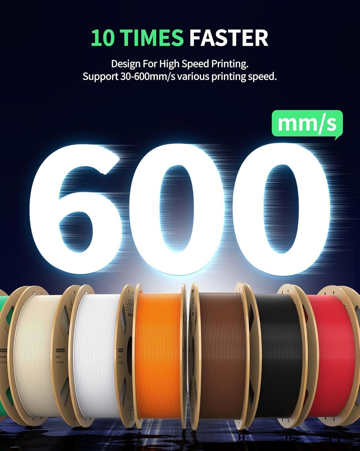 - High-Speed Printing (30–600mm/s): With a recommended speed range that caters from moderate to rapid printing, this PETG filament adapts well to different project needs. Whether you’re producing detailed prototypes or larger decorative pieces, it performs efficiently without sacrificing quality.