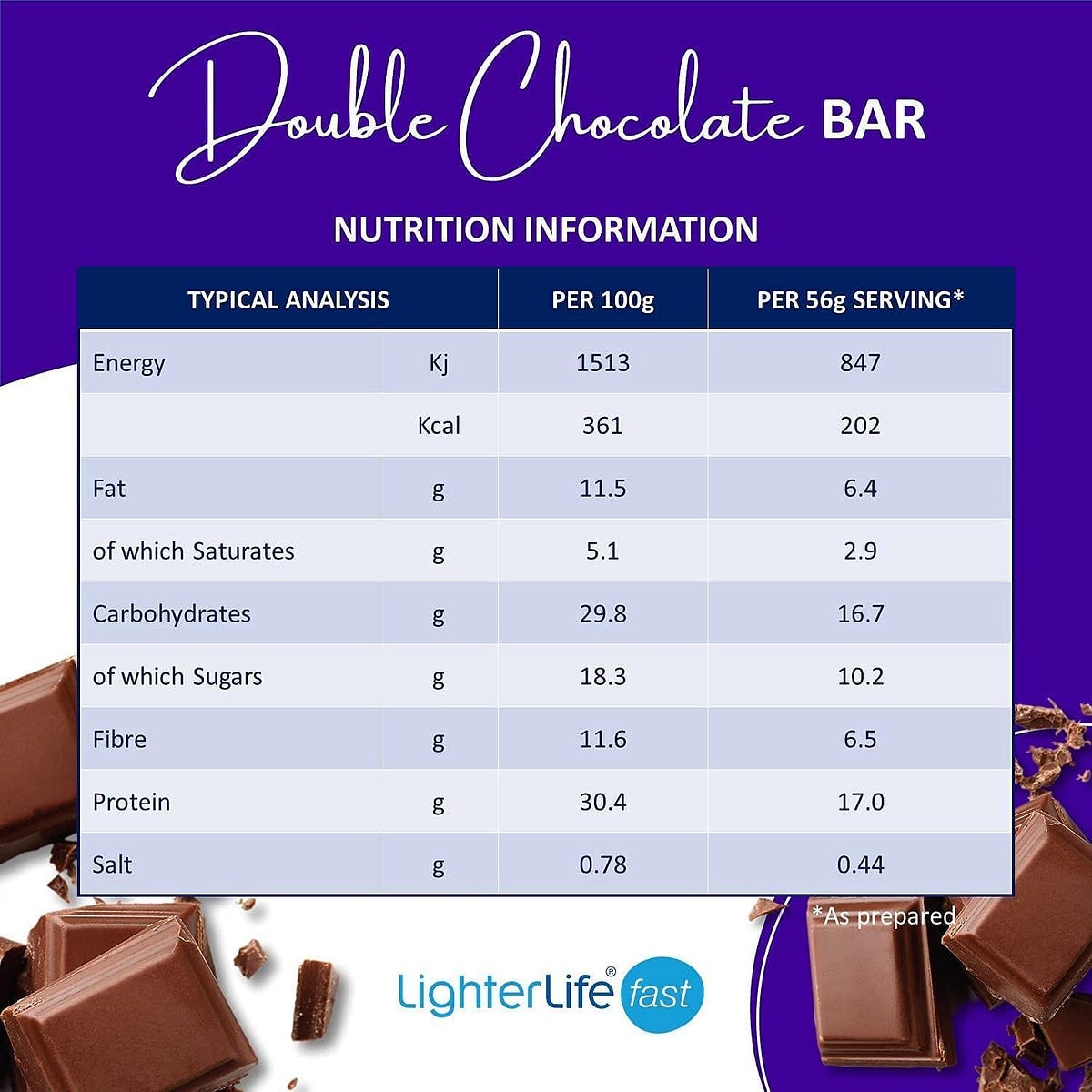 - Pleasant double chocolate taste, making dieting more enjoyable