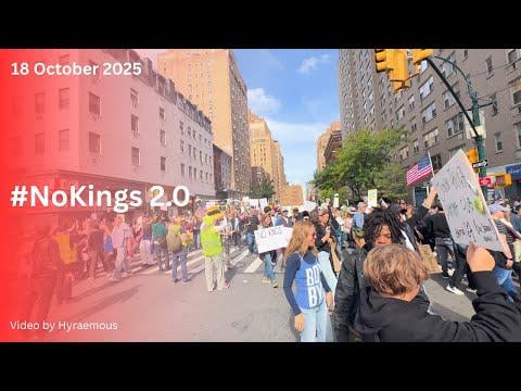 I attended the No Kings 2.0 protest in Midtown Manhattan, and it was pretty alright. I went with a group of clowns. We separated by the time we got to 34th Street, and they passed out noisemakers, whistles, and know your rights cards.