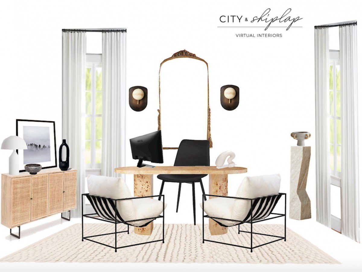 As I’m working from home now more than ever, I wanted to envision and design the ultimate home office for the future. A space that reflected both my style and a place to get work done. My friends Ash and Jess are the founders behind the incredible virtual interior design company, City & Shiplap. Together at City & Shiplap, they offer E-design (or online design) to help bring your vision to life. You can design a room or even an entire home with their services from your house, all done online.