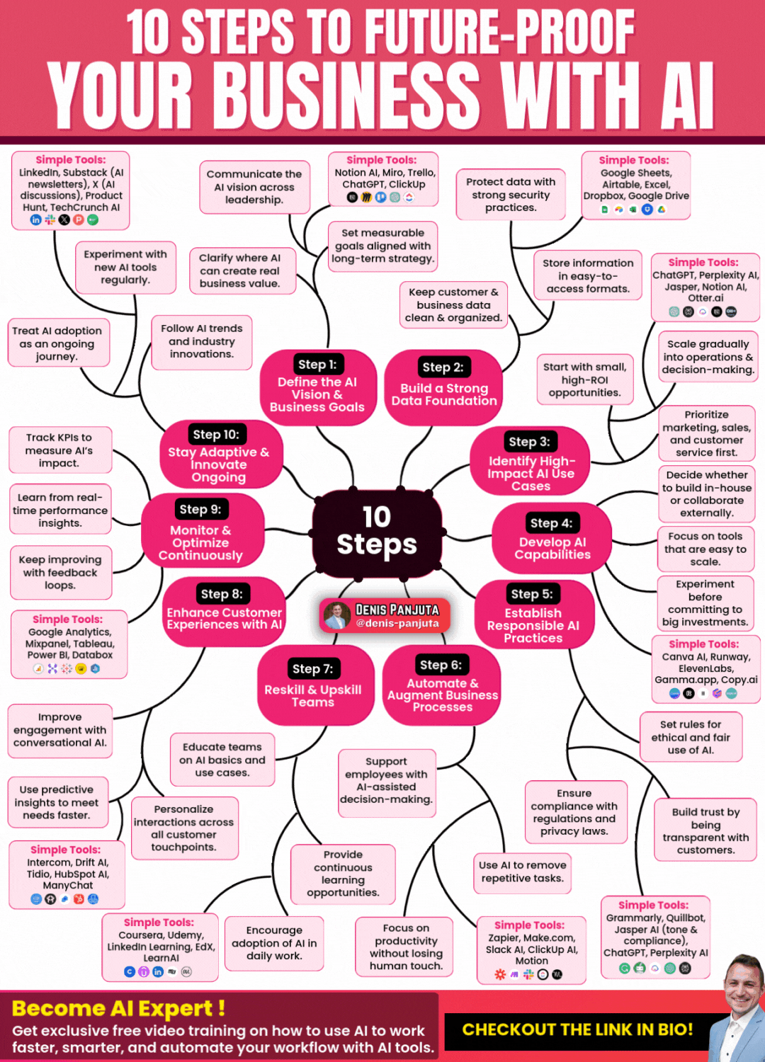This 10-step framework will guide you how to set goals, build foundations, and scale AI responsibly for sustainable long-term growth.