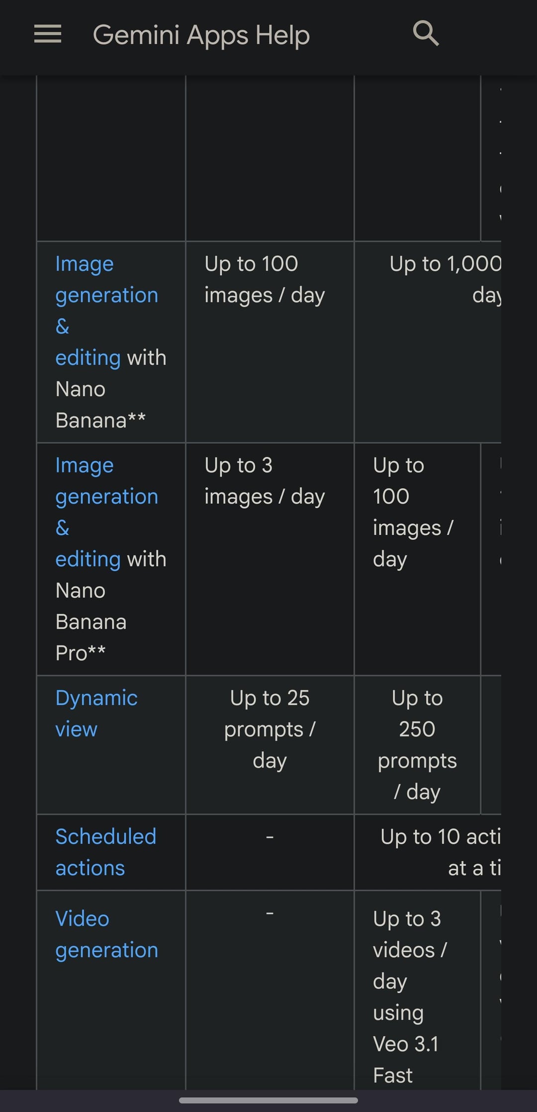 Here in this Gemini comparison table (pic 1), which can be found in the Gemini help, there is a comparison between free tier, Pro, and Ultra, but the new cheaper Plus subscription (pic 2) is not mentioned at all in the table.